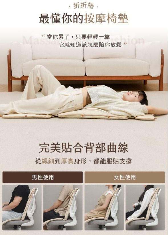 台灣按摩護理品牌3ZeBra最新推出 折折墊|輕薄隨行按摩椅墊,可以帶來猶如真人按摩既舒適體驗,超越市面上按摩椅墊!僅2.5kg輕盈重量,加上可折疊設計,做到好收納好攜帶。按摩椅墊完美貼合身形,透過3D按摩球做到深層揉捏、推壓、定點施力,針對穴道與肌肉層層釋壓,按摩更到位!量身打造專屬你的放鬆角落。