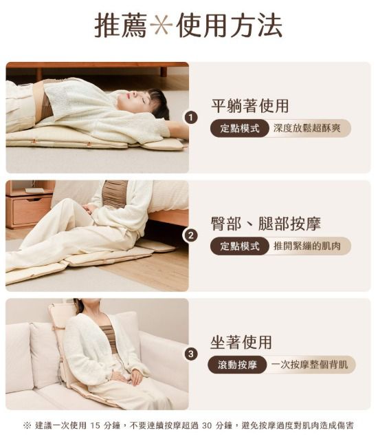 ⭕適合多個部位使用(腰背/ 肩頸/ 臀部/ 腿部)
