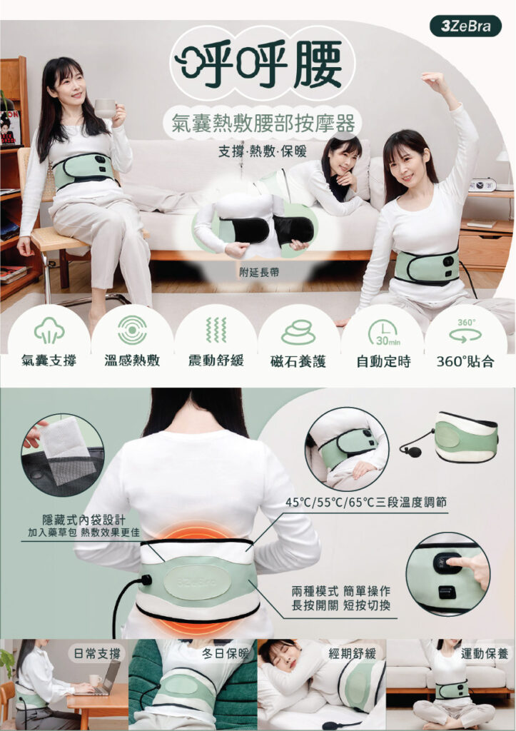 3Zebra - 呼呼腰|氣囊熱敷腰部按摩器
