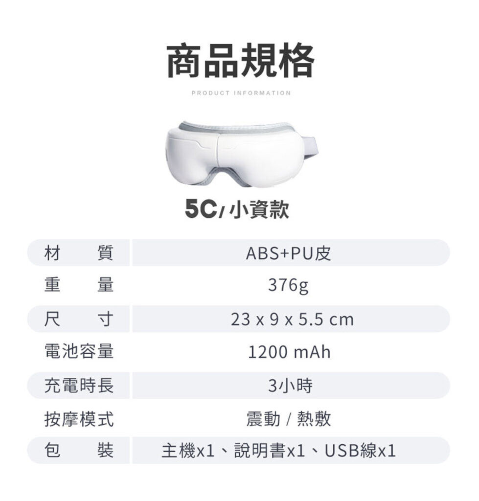 智能眼部按摩器結合震動與熱敷模式,搭配穩定的 NTC 智能控溫,能深入放鬆眼周肌群。加長按摩頭能精準按壓眼部周圍穴位,有效舒緩用眼疲勞。採用 ABS+PU 親膚材質,觸感柔軟且貼合,重量僅 376g,輕巧好佩戴。1200mAh 電池一次充電可使用 7–9 次,日常使用方便安心,是長時間用眼者的必備舒緩工具。