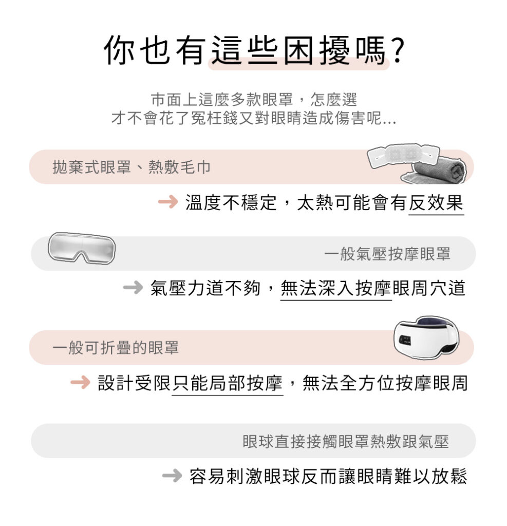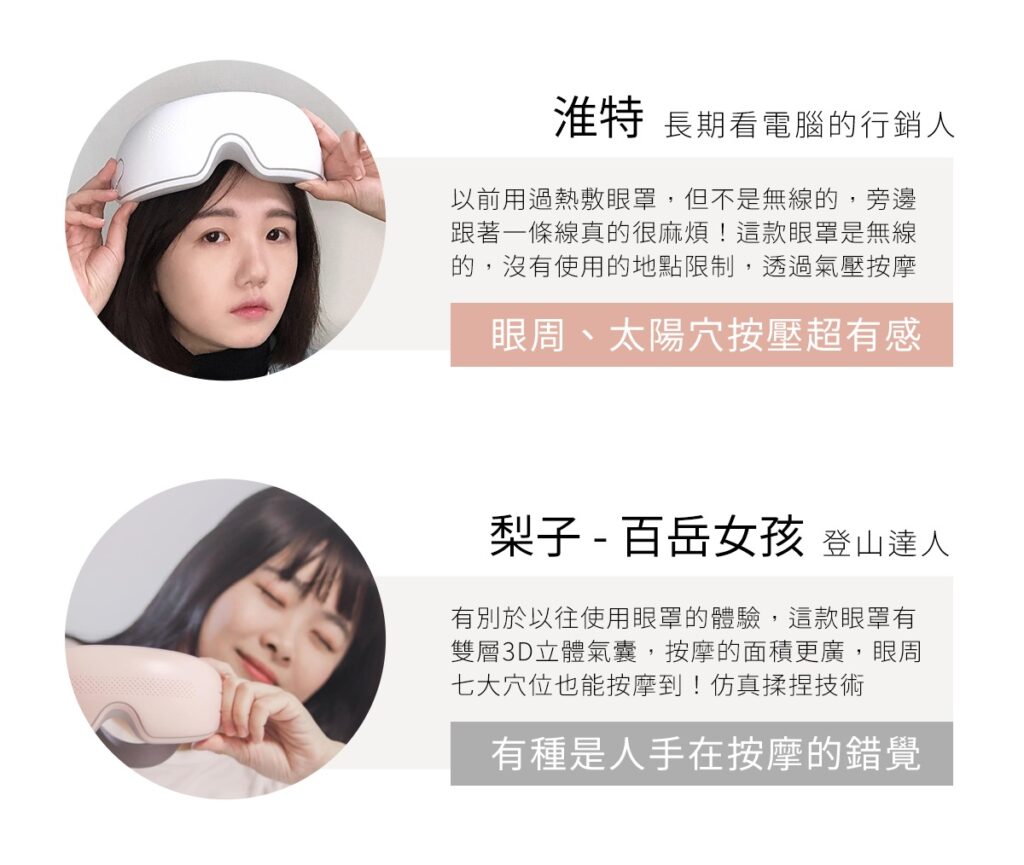 四種按摩模式(舒緩、眼保健操、睡眠、熱敷),可按照需求調整模式