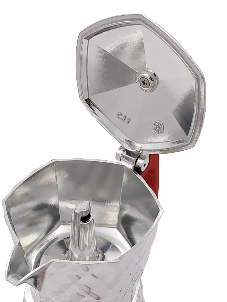 - 咖啡壺分為上下壺,水加入下壺,中間有個網狀漏斗隔層分隔上下壺。在網狀漏斗放咖啡粉,當下壺的水加熱後,變成高壓蒸汽往上走,經過中間隔層的咖啡粉再去上壺,變成咖啡
