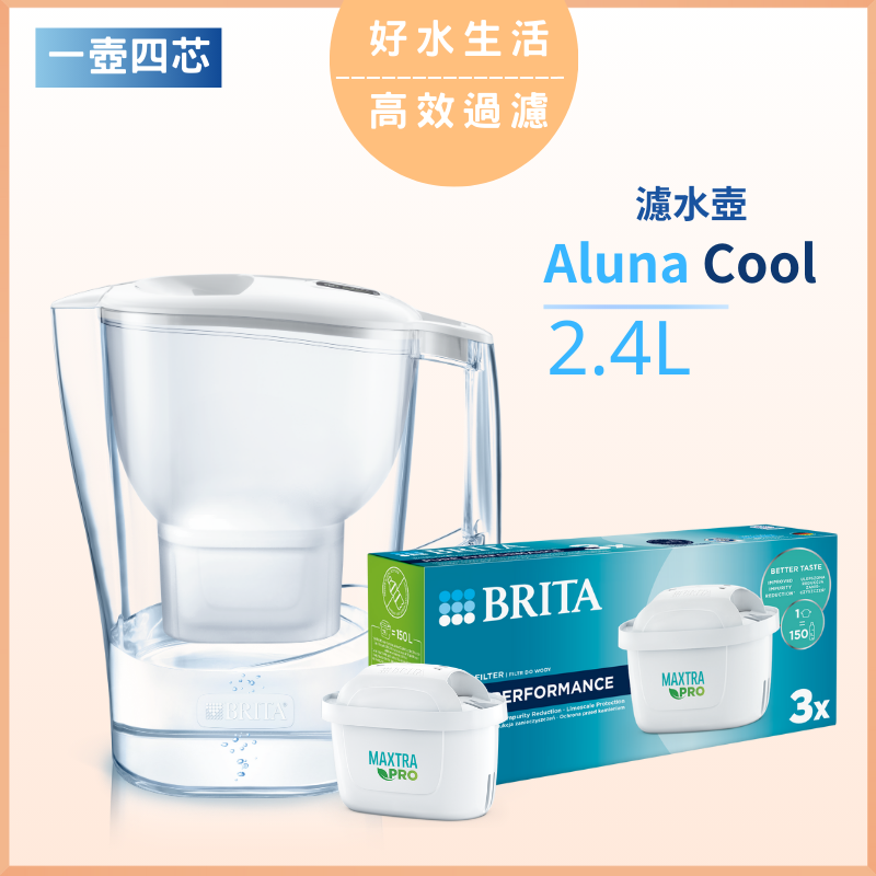 BRITA-Aluna Cool 2.4L 濾水壺白色 MX PRO + MAXTRA PRO Pure Performance 純淨全效全效濾芯 (三件裝)
