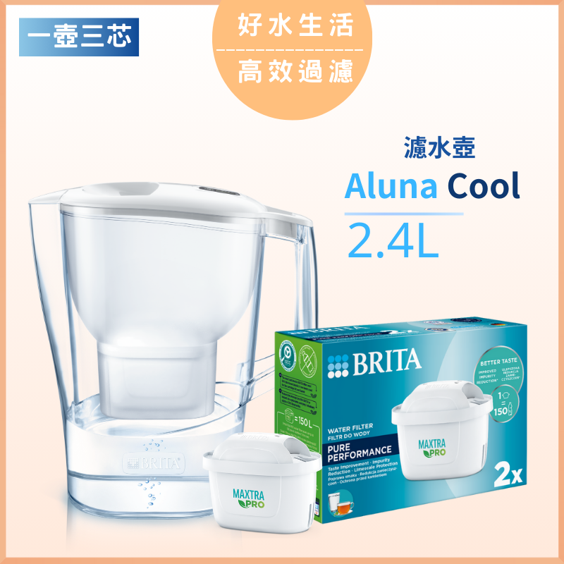 - BRITA ALUNA 系列產品,不僅設計簡約時尚,更配備眾多實用功能,讓您放心飲用。配合MAXTRA PRO PURE PERFORMANCE 純淨全效濾芯,較MX+濾芯提升4倍*極淨效能,濾水量提升至50%,具強大的過濾功能,能去除重金屬及氯氣。升級德國微米級精濾網,加強過濾效能,可過濾微細夥粒、沙粒、銹粒、水垢及農藥等雜質。讓您輕鬆沖出清澈好茶,香濃咖啡。