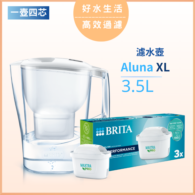 BRITA-Aluna XL 3.5L 濾水壺 (白色) MX Pro + MAXTRA PRO Pure Performance 純淨全效全效濾芯 (三件裝)