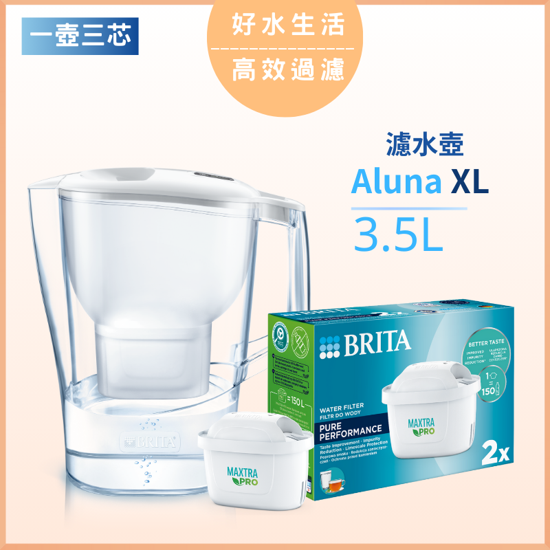 BRITA-Aluna XL 3.5L 濾水壺 (白色) MX Pro + MAXTRA PRO Pure Performance 純淨全效全效濾芯 (二件裝)