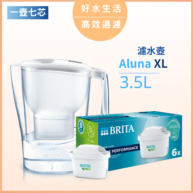 BRITA-Aluna XL 3.5L 濾水壺 (白色) MX Pro + MAXTRA PRO Pure Performance 純淨全效全效濾芯 (六件裝)