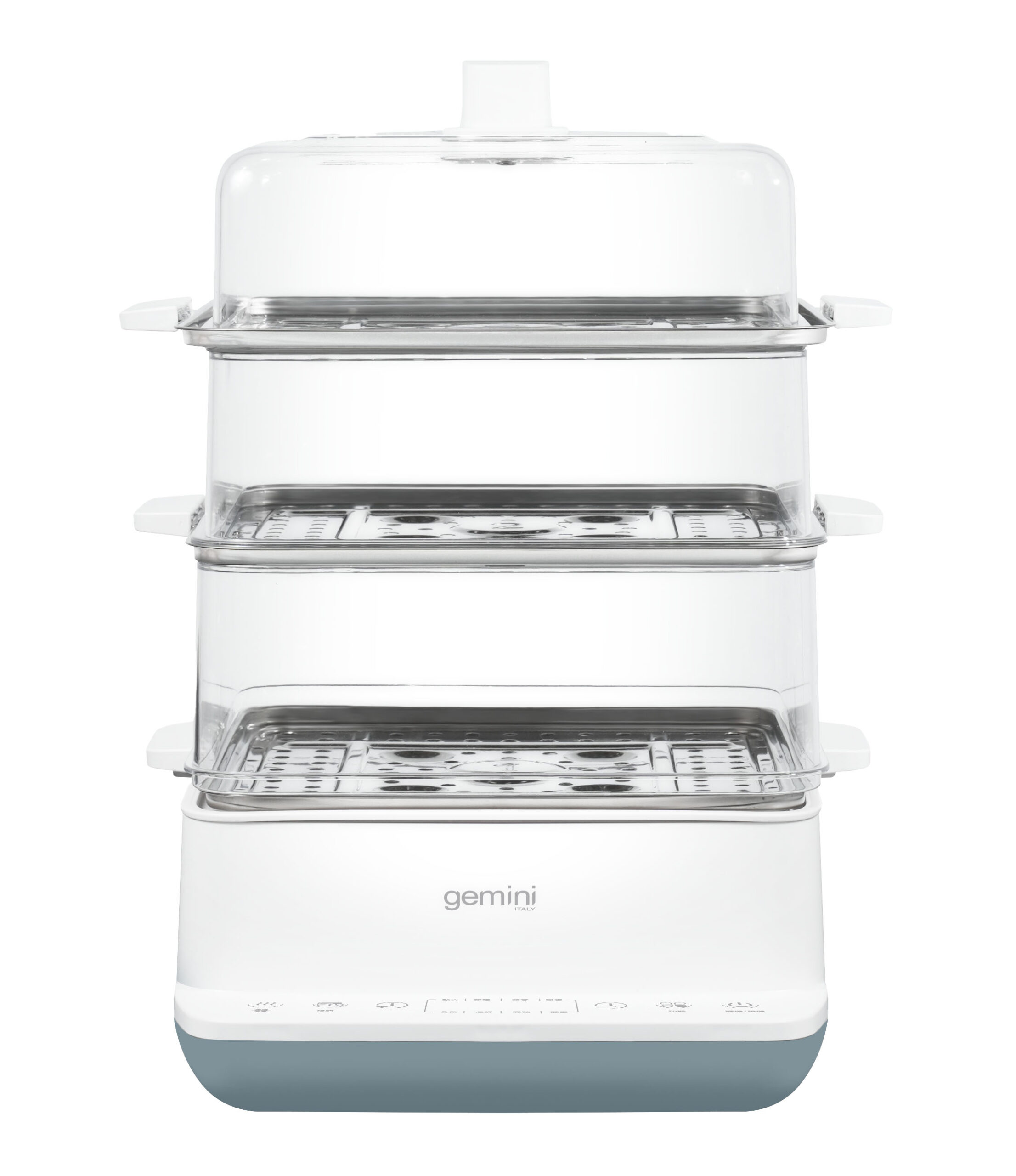 這款16L三層電蒸鍋適合蒸魚、海鮮、肉類、蒸蛋、點心、雜糧、蔬菜和雞蛋。具備24小時預設功能和5小時保溫功能,非常方便實用