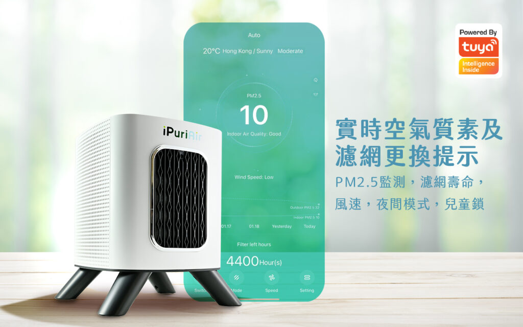 手機應用程式及智能操作介:面iPuriAir可實時顯示附近的空氣質素,透過內置智能操作介面,讓用家輕鬆簡易地遙距監察及管理其運作。手機應用程式能同時控制多部或在不同地方iPuriAir。 透過應用程式可設定iPuriAir每日的開/關機時間。 我們的智能控制包括設定風速,兒童保護鎖/夜間模式,自動關機模式等。