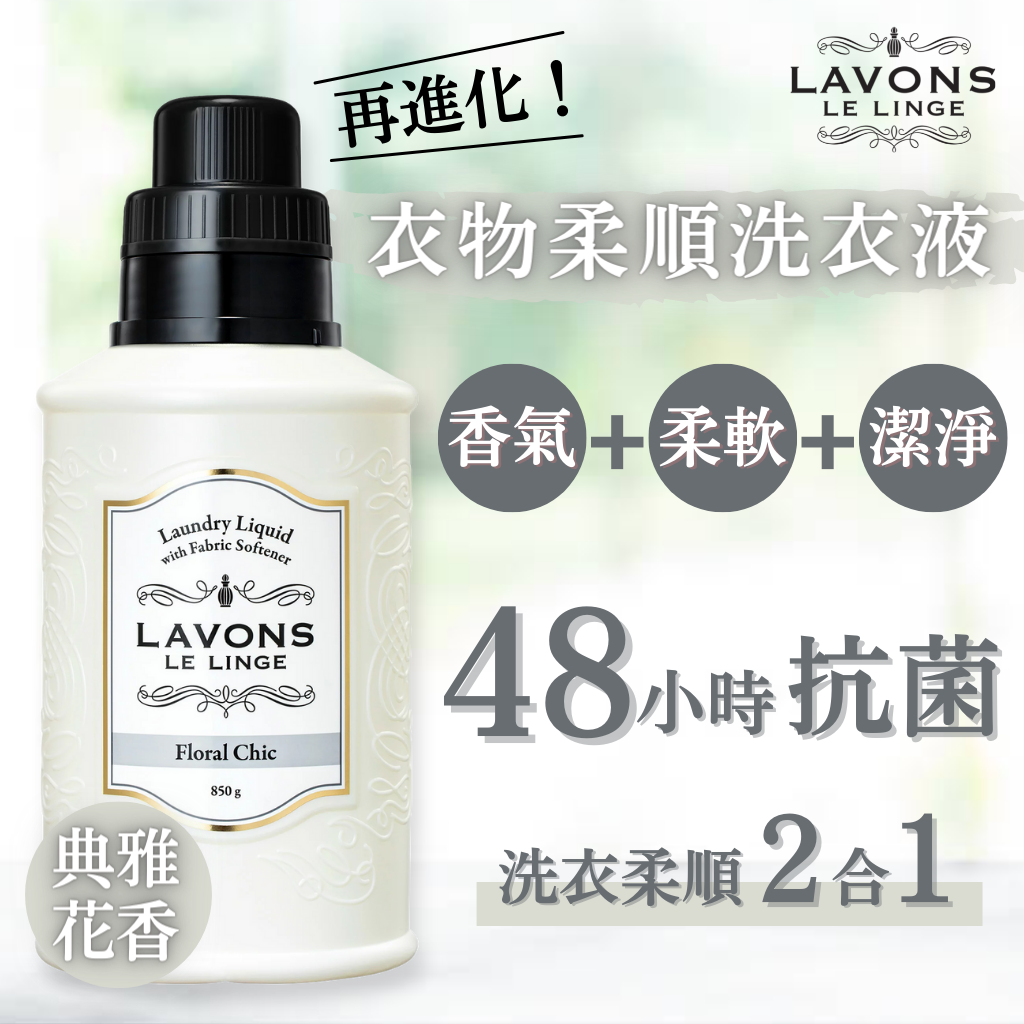 LAVONS 抗菌香氣2合1衣物柔順洗衣液 – 典雅花香 (850克)