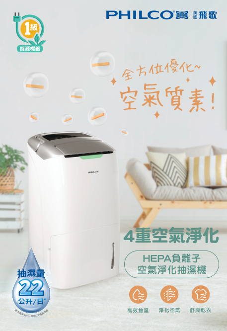 PHILCO飛歌 HEPA 負離子空氣淨化抽濕機 PDA22WWX
