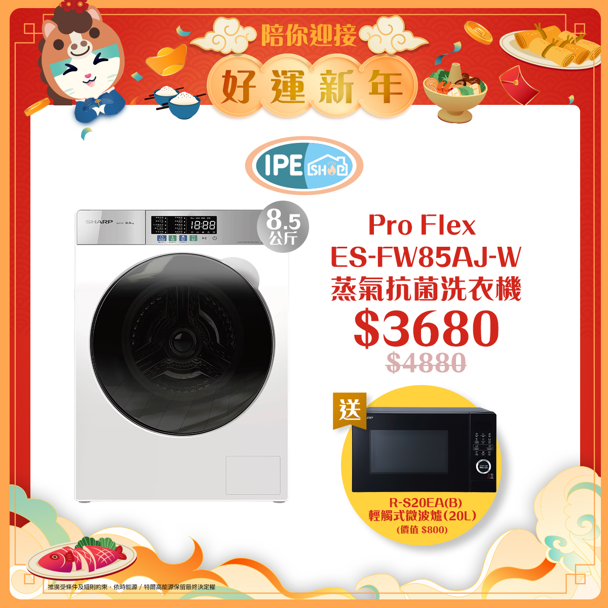 SHARP 聲寶ES-FW85AJ-W 8.5公斤1200轉 蒸氣前置式洗衣機
